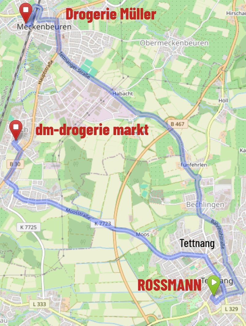 Das gute in einer freien Marktwirtschaft ist, dass man nicht auf einen Anbieter angewiesen ist und notfalls einfach zum Wettbewerber wechseln kann. Für alle AfD-Wähler und AfD-Sympathisanten, mit denen der Drogeriemarkt ROSSMANN in Tettnang nichts zu tun haben will, gibt es hier eine Karte mit dem schnellsten Weg zum dm-drogerie markt und zur Drogerie Müller in Meckenbeuren.