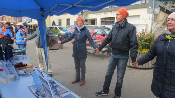 Wir waren bei der Friedenskette Bodensee mit einem Infostand in Meersburg dabei und trotzten gelegentlichen Windböen und kurzen Regenschauern.