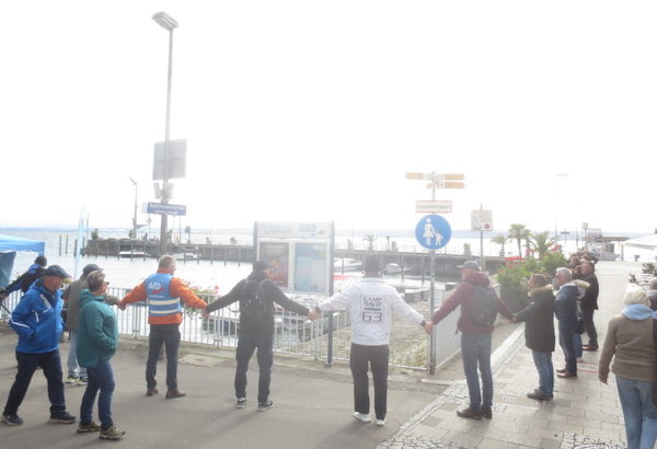 Um 15 Uhr schließt sich die Menschenkette entlang der Seepromenade am Bodensee.