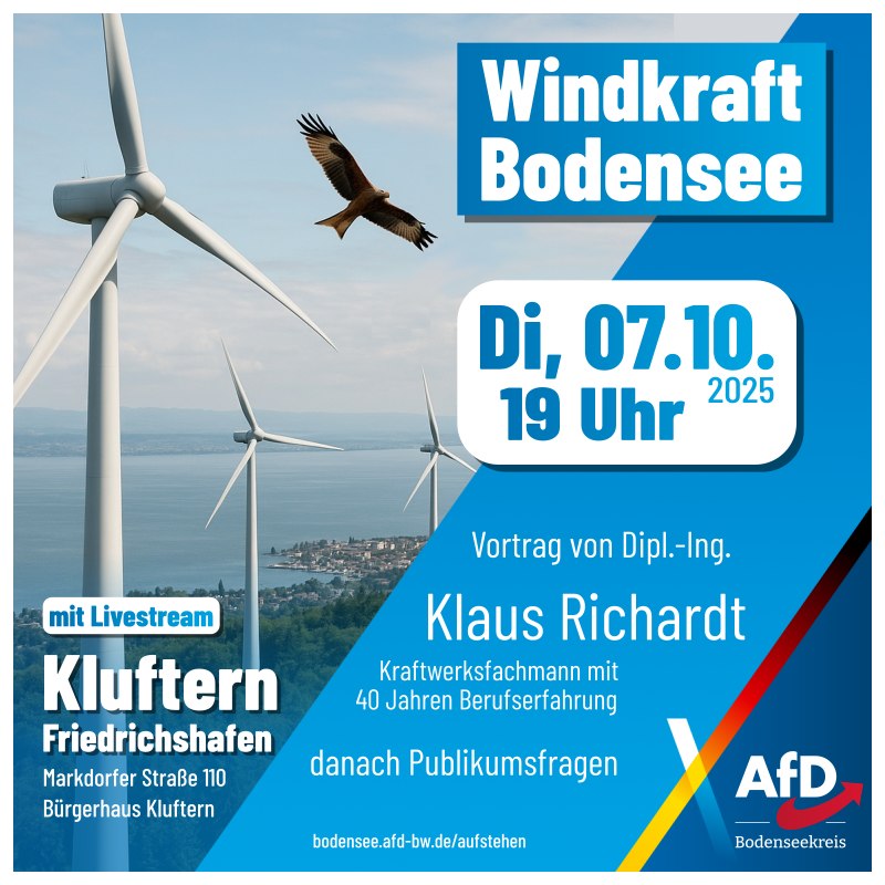Wir laden ein zum Vortrag von Dipl.-Ing. Klaus Richardt am Dienstag, den 7. Oktober 2025 um 19 Uhr ins Bürgerhaus Kluftern, Markdorfer Straße 110, 88048 Friedrichshafen.